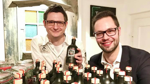 „Das war eine coole Idee“, so Machon. Es sei doch gut, wenn man als Apotheker zu besonderen Anlässen etwas aus der eigenen Apotheke verschenken könne. Auch CSU-Politikerin Dorothee Bär, Bundestagsabgeordnete seines Wahlkreises, habe schon eine Flasche Kräuterlikör von Benkert erhalten. Jetzt kam Bär zur Präsentation des Birkwild-Kräuterlikörs von Machon. Den 35-prozentigen Likör hat der Apotheker aber nicht alleine gemixt. Seit vielen Jahren verbindet den Apotheker aus Hendungen eine enge Freundschaft mit dem Brenner und Edelbrandsommelier Mathias Gerstner aus Trappstadt. Im bürgerlichen Beruf ist Gerstner eigentlich Banker. Nebenher betreibt der Geldmanager aber noch ein Feinkostgeschäft.