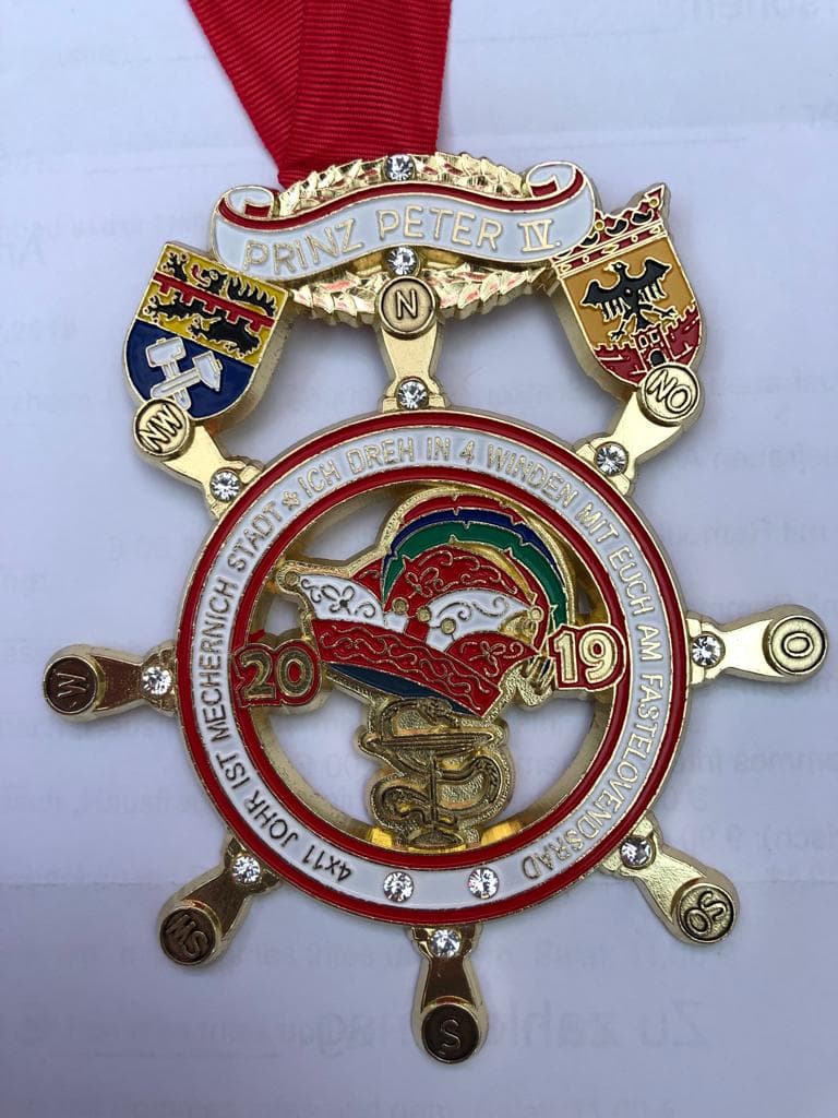 Der Apotheker trägt von nun an den Adelstitel „Prinz Peter IV“. Sein Orden zeigt neben den Wappen seiner Heimatstadt Sinzig und dem von Mechernich auch den Leitsatz der Session 2018/19: „4 mal 11 Johr ist Mechernich Stadt, ich dreh in 4 Winden mit euch am Fastenlovendsrad.“ Die Devise bezieht sich auf die 44 Jahre der Stadtrechte von Mechernich und die vier Winde als Zeichen seiner Leidenschaft für das Bootfahren.