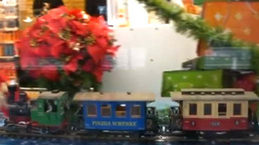 Die Schmalspurbahn mit Lok und angehängten beiden Wagen ist mittlerweile eine Rarität. Sie stammt vom renommierten Modellhersteller Liliput. In den 1950er Jahren in Wien gegründet hat sich das Unternehmen auf die Nachbildung von Lokomotiven, Reise- und Güterwagen nach deutschen, österreichischen und schweizerischen Vorbildern verlegt. Der Zug in der Barbara-Apotheke stammt aus einer Produktion von 1984. Die Sonderzugpackung „Pinzgauer Bahn“ war auf 600 Exemplare limitiert.