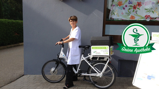 „Ich nehm‘ heute das E-Bike!“ ruft der Bote, schwingt sich aufs Rad und liefert so schnell wie möglich die Arzneimittel aus. Die Kunden der Eschach-Apotheke im baden-württembergischen Niedereschbach freut es. Die Lieferung per E-Bike ist schnell, kostengünstig und nachhaltig.