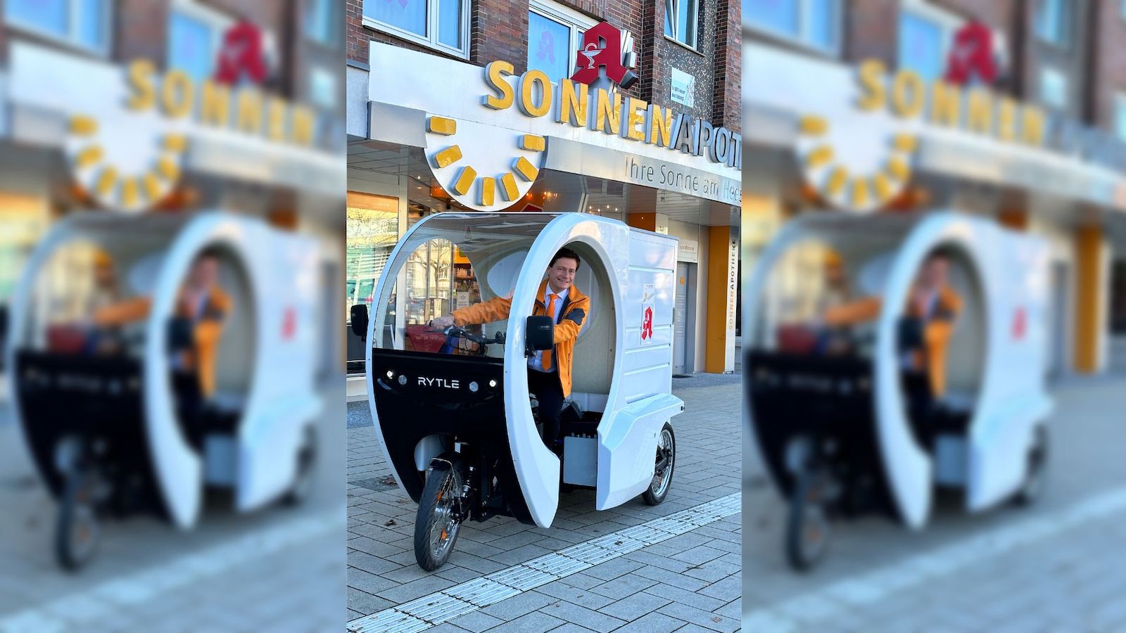 Die Sonnen-Apotheke in Hamm ist gleichzeitig auch Sanitätshaus. Daher gehört die Versorgung mit Rollatoren, Inkontinenzmaterial oder auch Rollstühlen ebenso zum Apothekenalltag wie die Abgabe von Medikamenten. Vieth ist passionierter Radfahrer, die Suche nach einer umweltfreundlicheren Alternative zu Botenfahrten in die Innenstadt brachte ihn auf das E-Bike: „Praktisch ist, dass das Gefährt rechtlich gesehen ein Fahrrad ist. Es ist also neben der Nachhaltigkeit unkompliziert in der ‚Haltung‘. Ich brauche keinen TÜV, keine Versicherung und kann theoretisch überall parken und die Fahrradwege benutzen.“