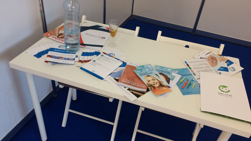 Während in Halle B5 das Leben tobt, sucht in Halle B6 ein Croissant verzweifelt seinen Besitzer. Spaß bei Seite, die traurige Tradition der verwaisten Stände der internationalen Aussteller setzt sich auch am letzten Tag der Expopharm 2018 fort. Der hintere Teil der Halle ist leergefegt, zurückgeblieben sind ein rotes Absperrband, Müll und die Security.