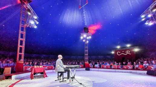 Theuerkauf hat sich wahrlich einen Namen gemacht im Ort. Das erkennt man nicht zuletzt daran, dass seine Show drei Monate im Voraus ausverkauft war. Ein ganzes Zirkuszelt hat er damit gefüllt, das eigentlich für ein Schulprojekt im Ort stand. „Die Grundschule hat hier alle vier Jahre ein Zirkusprojekt, bei dem sie Kunststücke üben und so weiter“, erklärt er. „Abends ist das Zelt dann leer, da hat man uns gefragt, ob wir das nicht mit einer Show füllen wollen.“