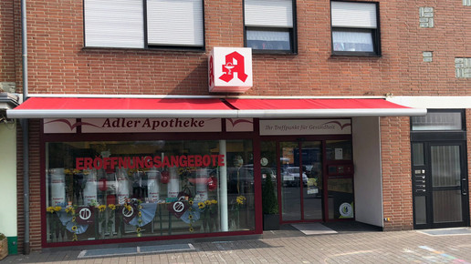 Seine erste Adler-Apotheke befindet sich im nordrhein-westfälischen Jüchen, Markt 27. Den neuen Apotheken-Adler lässt der 39-Jährige seit ein paar Tagen in Wevelinghoven steigen. Vom Marktplatz 16 aus, Wevelinghoven ist ein Stadtteil von Grevenbroich. „Die erste Apotheke habe ich im Jahr 2012 eröffnet“, erzählt er. Dieses Jahr hat er dort mit seinem Team den 200. Geburtstag des Unternehmens gefeiert. Der neue Adler ist rund zehn Kilometer vom ersten Standort, der neuerdings die Filiale ist, entfernt. „Die neue Apotheke ist größer, deshalb ist sie der Hauptsitz“, erläutert er.