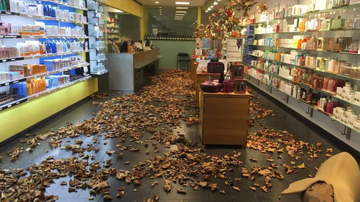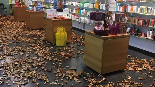 Für ein paar Tage gleicht die Offizin der Hubertus-Apotheke in Limburg einer herbstlichen Kulisse. Einmal im Jahr findet man neben Kosmetika und Bonbons etwas eher Ungewöhnliches in der Freiwahl: Buntes Herbstlaub ziert den Boden.