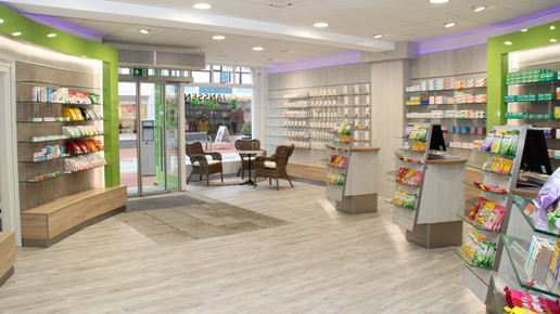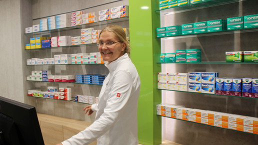 Die Offizin ist, so sagt die 40-Jährige, sei „beinahe Drive-in“. „Ich wollte eine große Fläche für Rollstuhlfahrer, Rollatoren und Scooter. Wir haben eine Automatiktür, die Kunden können bequem herein- und unser Angebot quasi selbst abfahren. Bei uns gibt es keine Aufsteller mit Ware.“