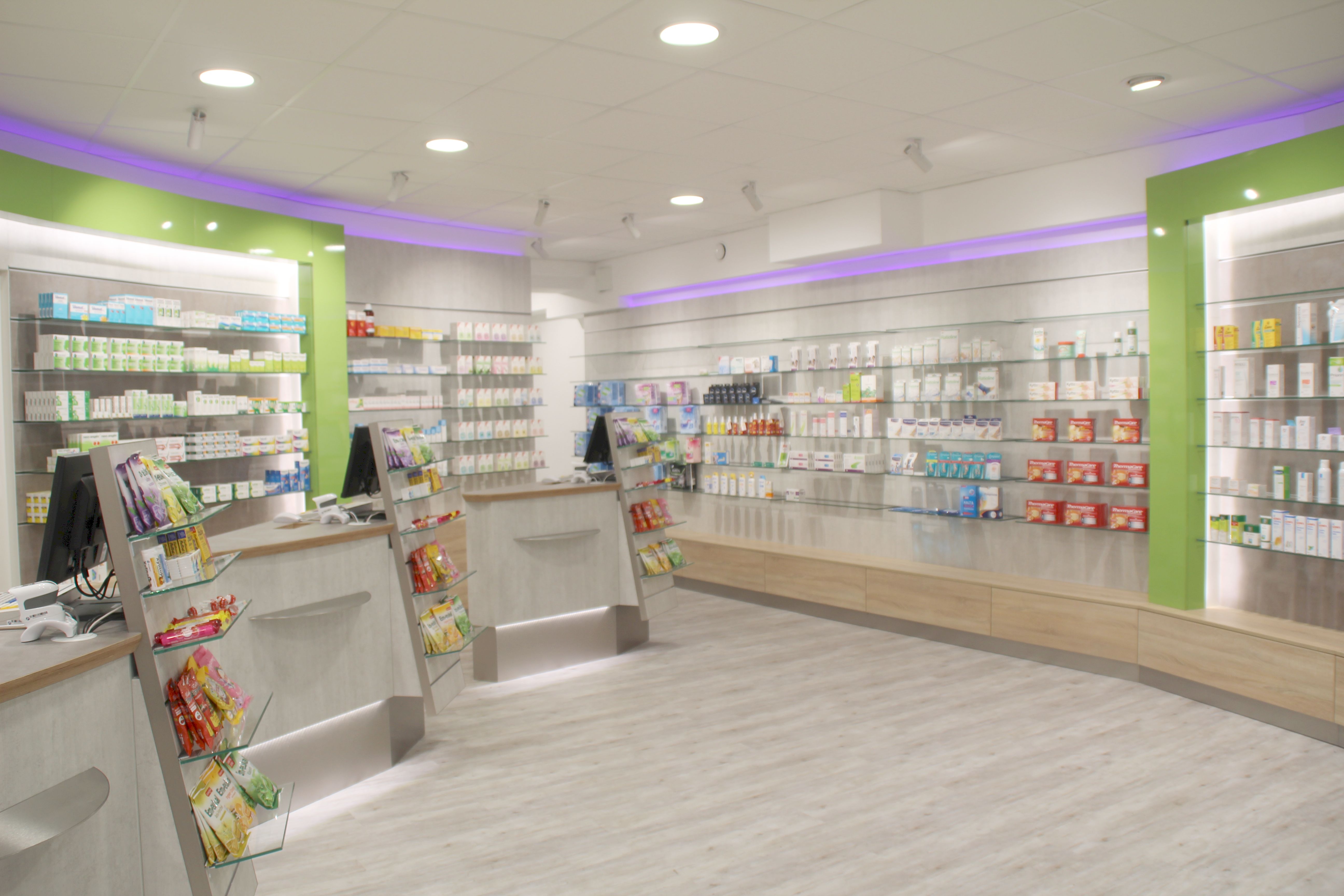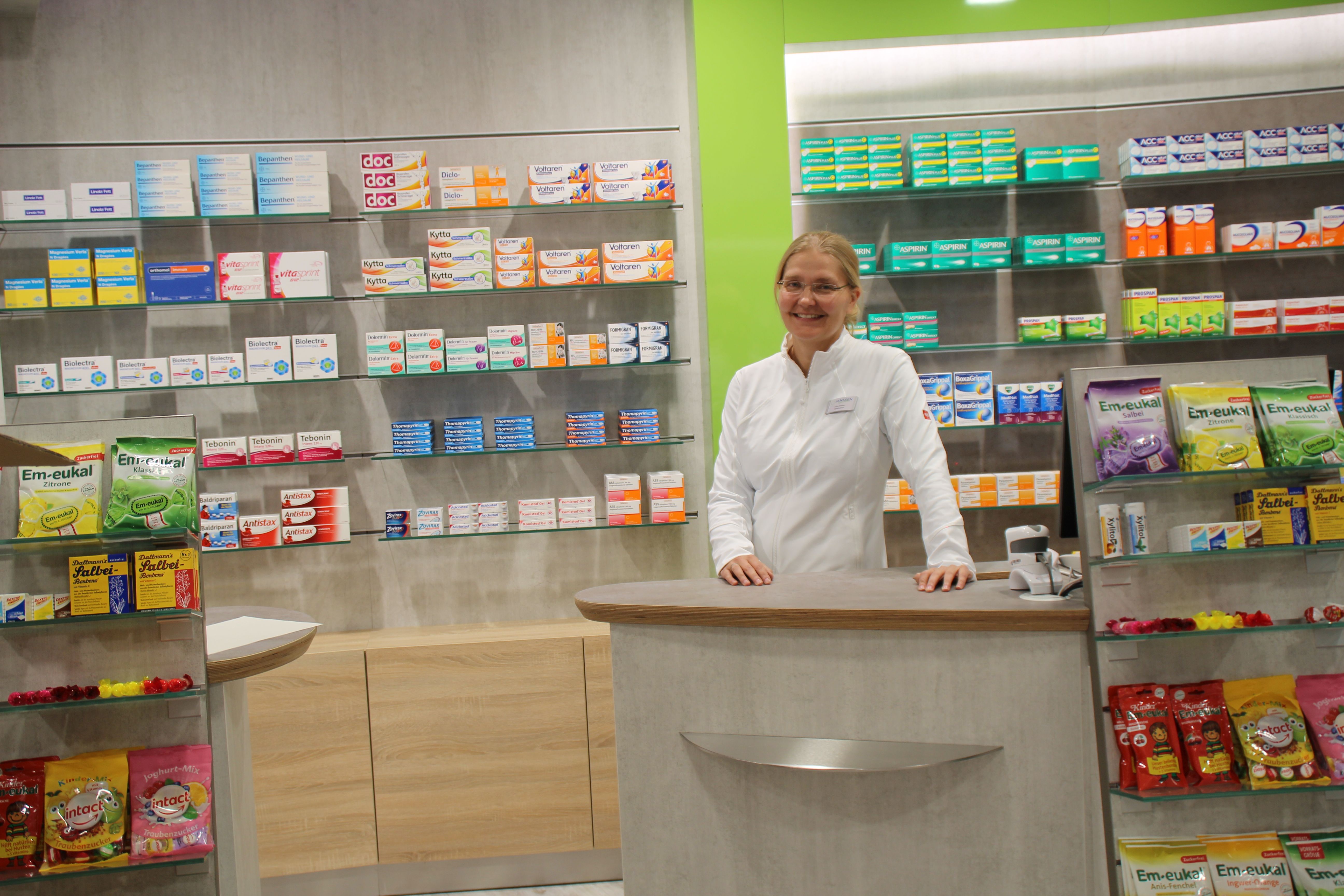 Die Offizin ist, so sagt die 40-Jährige, sei „beinahe Drive-in“. „Ich wollte eine große Fläche für Rollstuhlfahrer, Rollatoren und Scooter. Wir haben eine Automatiktür, die Kunden können bequem herein- und unser Angebot quasi selbst abfahren. Bei uns gibt es keine Aufsteller mit Ware.“