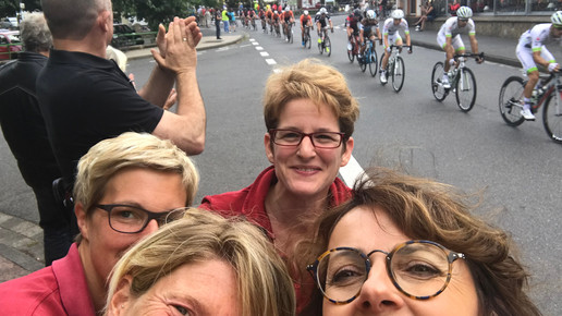 Nach einer zehnjährigen Pause fand das deutsche Pendant zur Tour de France vom 23. bis zum 26. August erstmals wieder statt. Und führt direkt vor der Apotheke von Inge Göttling vorbei. „Die Tour geht über 3235 km und 4400 Höhenmeter in der Süd- und Westeifel bis nach Echternach in Luxemburg. Die Etappe Bonn-Trier führt direkt vor unserer Tür entlang“, erzählt sie. „Natürlich haben wir uns das angeschaut, aber das ist eigentlich nur eine Sache von vielleicht sieben Minuten, dann sind die alle vorbeigefahren.“