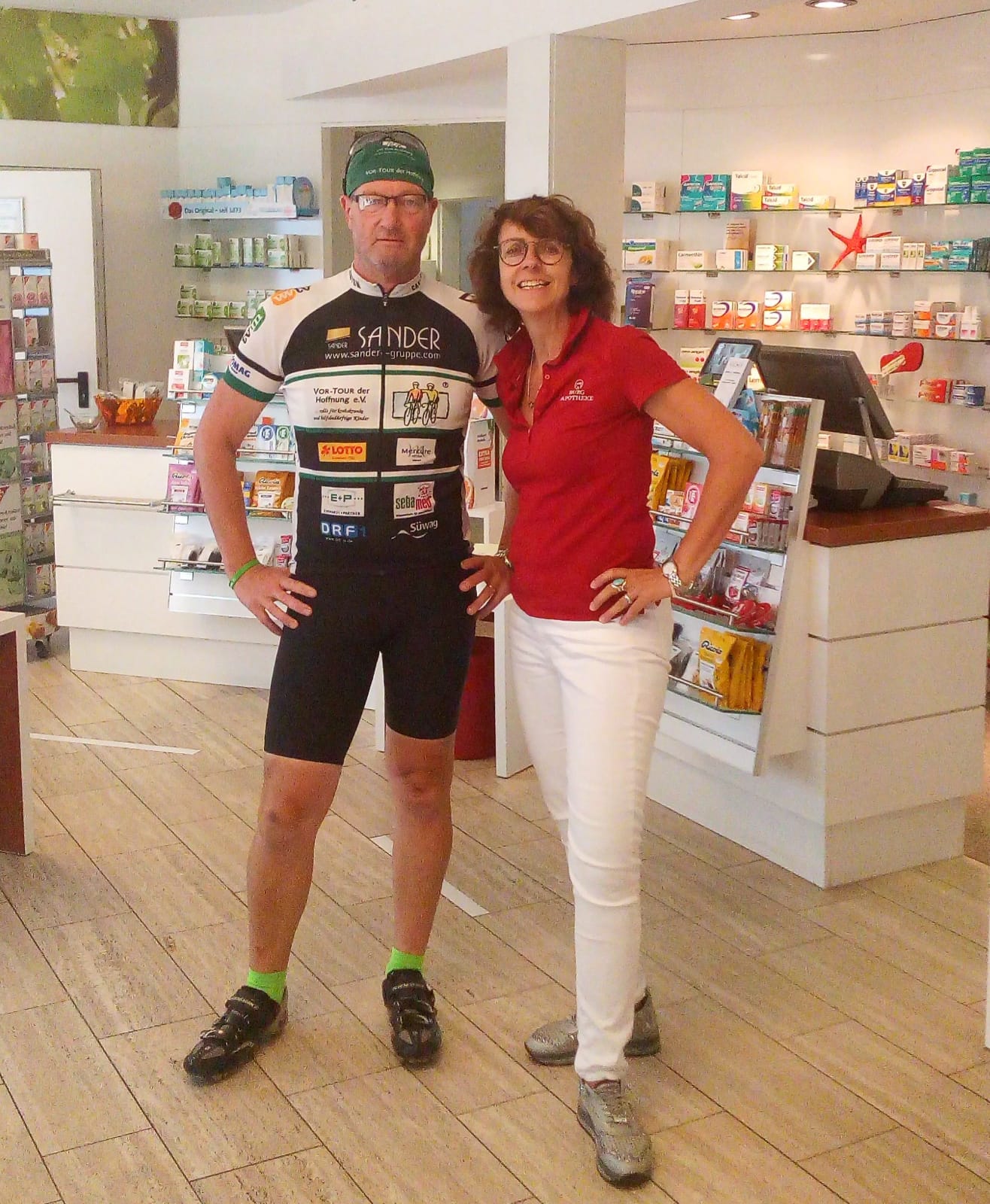 Mehr Gelegenheit, sich einzubringen, brachte ihr kürzlich die „Vor-Tour der Hoffnung“, ein jährlich stattfindendes Benefizrennen zur Unterstützung krebs- und leukämiekranker Kinder. „Einer unserer Kunden ist da selbst mitgefahren. Als er letztens in die Offizin gekommen ist und gefragt hat, ob wir nicht auch spenden wollen, da habe ich natürlich direkt in die Kasse gelangt. Es ist toll, wenn man so einen niedrigschwelligen Zugang zur Möglichkeit hat, selbst zu helfen.“ Ansonsten sind es meist Radtouristen, die ihre Hilfe benötigen: „Da kommt immer mal wieder einer, der gestürzt ist. Für die haben wir unsere Kiste hier, mit der wir das versorgen können. Glücklicherweise können die meisten Touristen hier ihren Urlaub aber unbeschwert verbringen.“