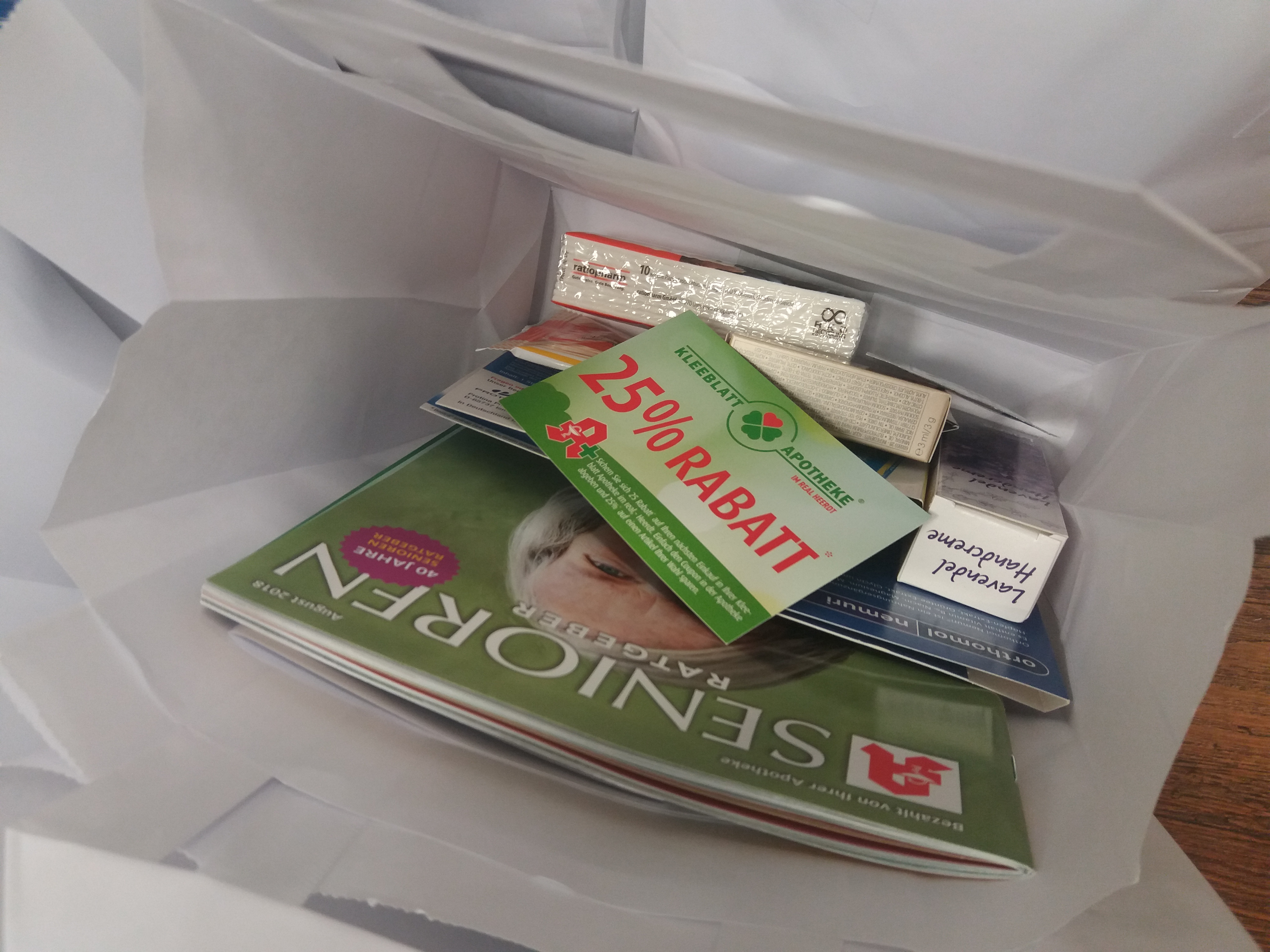 Der umfasste unter anderem Handcreme, Taschentücher, eine Ausgabe des Senioren-Ratgebers und Gutscheine über 25 Prozent Rabatt. Außerdem machten sich die Kleeblatt-Mitarbeiter noch die Mühe und erstellten ein eigenes, apothekenspezifisches Kreuzworträtsel. Wer das schaffte, kann mit dem Lösungswort an einer Verlosung in der Apotheke teilnehmen. Dort gibt es zwei DVDs und drei CDs zu gewinnen vom Star des darauffolgenden Abends.