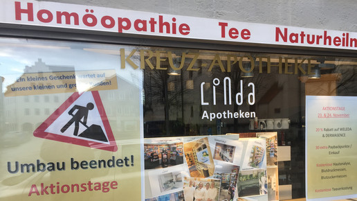Die Kreuz-Apotheke befindet sich in der Altstadt von Schongau. Die Apothekerin sagt: „Es ist mein Traumberuf und wir können wirklich nicht klagen. Die Zahlen steigen stetig, wir sind zufrieden. Wenn man guten Service bietet, kundennah ist und dafür lebt, dann kann Apotheke nur Spaß machen.“ Derzeit wird der Lieferservice ausgebaut. „Wir richten gerade einen Shop für Lieferungen ins Umland ein. Wer bis 12 Uhr bestellt, bekommt die Ware noch am selben Tag geliefert.“