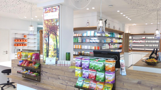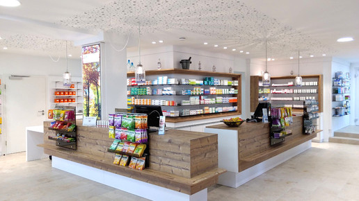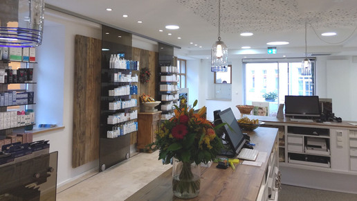 Dieser Probleme zum Trotz sind die Vollmers sehr glücklich mit dem Erscheinungsbild ihrer Apotheke. „Wir sind begeistert, die Planung haben wir gemeinsam mit unserem Innenarchitekten gut hinbekommen“, bekundet Monika Vollmer. „Auch mit der Unterstützung unseres Hausherrn sind wir sehr zufrieden.“
