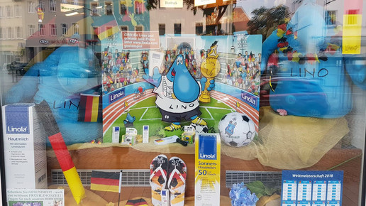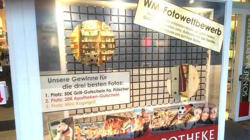 Pünktlich zum WM-Start am 14. Juni präsentierte sich die Von-Galen-Apotheke im besten Fußball-Look und erntet seitdem begeisterte Kommentare. „Einfach genial“, meint eine Kundin. „Sieht in natura noch viel cooler aus“, so ein weiterer Kommentar. „Die Dekoration kommt wirklich super an“, freut sich Müller. „Auch noch eine Woche später werden ich und meine Mitarbeiterinnen sehr häufig auch außerhalb der Apotheke darauf angesprochen.“