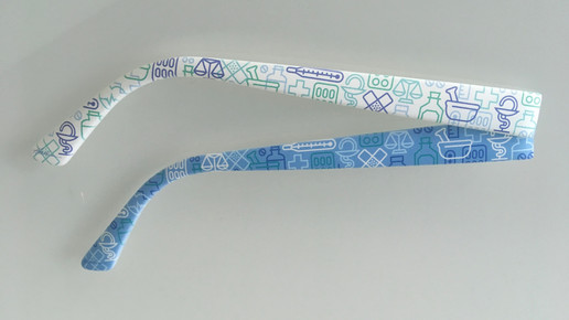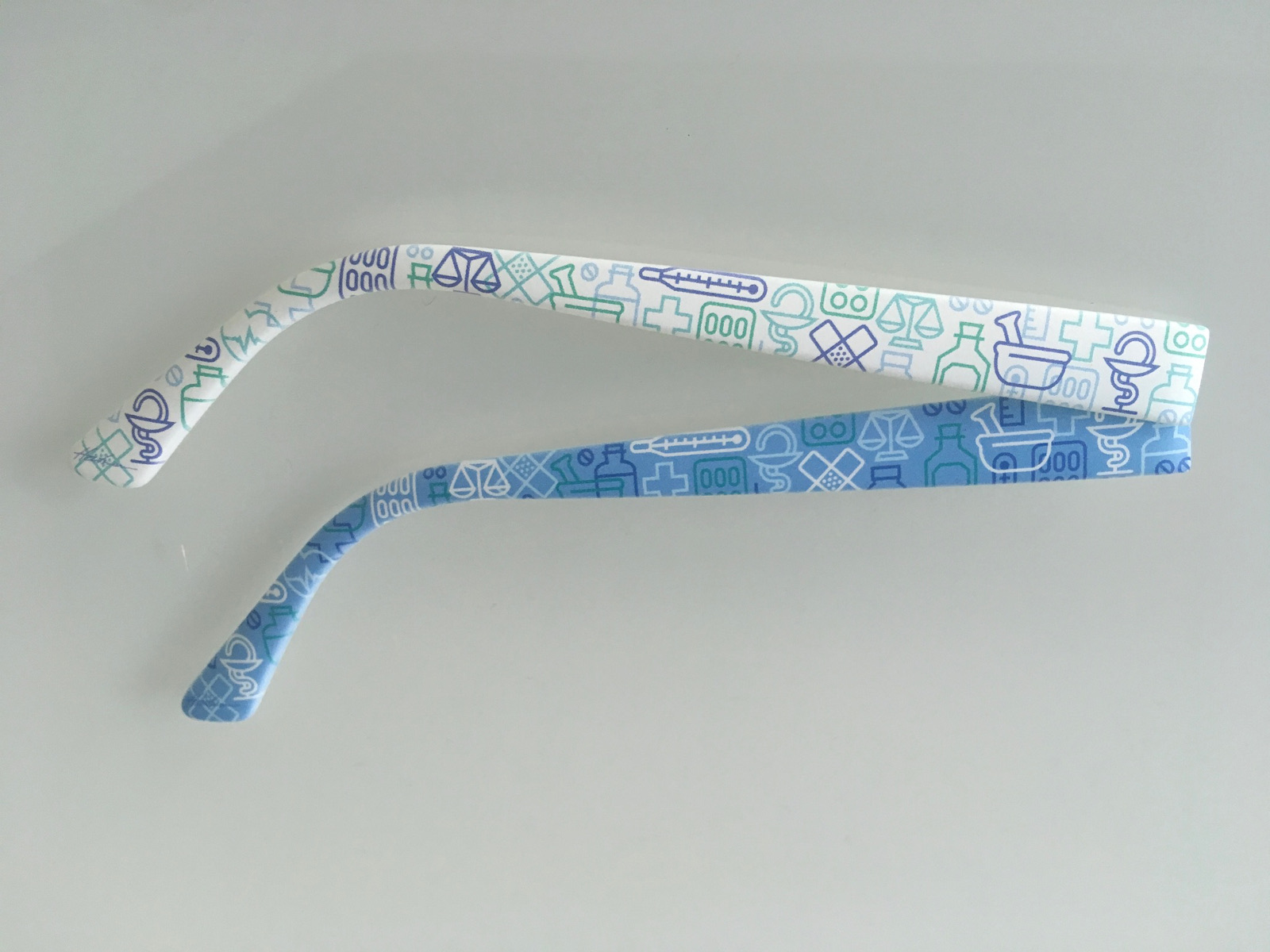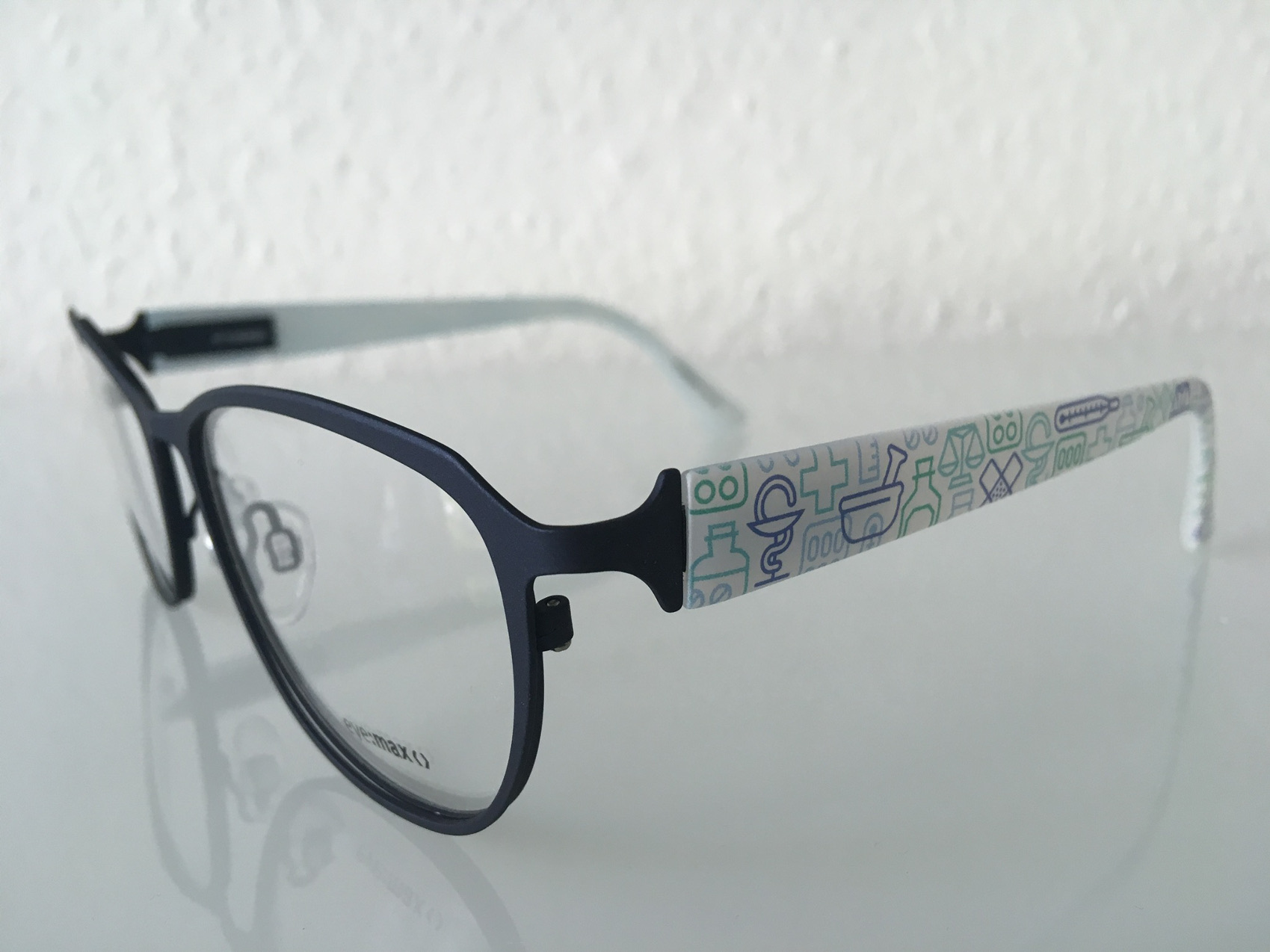 Äskulapstab, Blister, Mörser: Seit dem 16. April bietet Koberg+Tente „Berufe-Bügel“ für Apotheken an. Auf blauem oder weißem Hintergrund sind verschiedene Symbole aus Apotheke und Pharmazie zu sehen. „Der Apotheker könnte damit für seine Mitarbeiter eine Dienstbrille anbieten, die die Bügel während der Arbeitszeit einsetzen“, sagt Inhaber Frank Tente, der das Münster Unternehmen in dritter Generation führt.