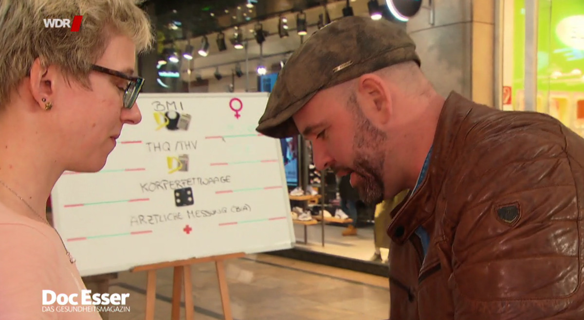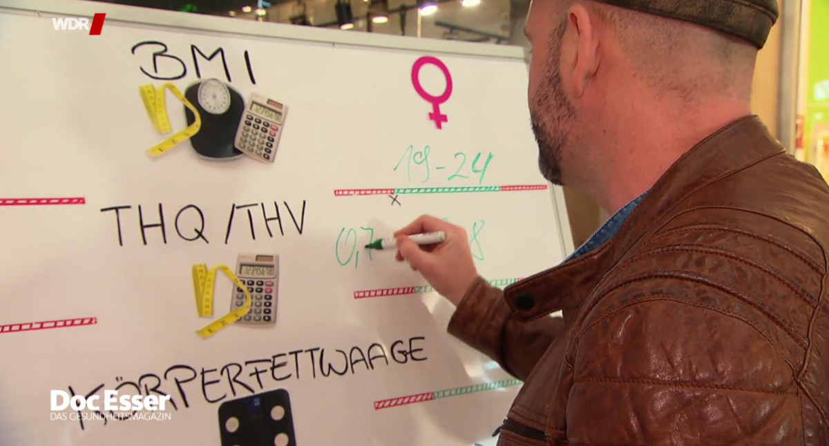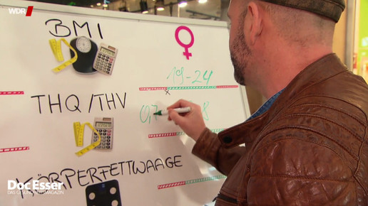 Was ist das gesunde Gewicht? Der Frage geht Doc Esser in Nordrhein-Westfalen nach. Der Mediziner wiegt, misst und rechnet. Auf dem Prüfstand stehen verschiedene Methoden zur Messung von Übergewicht. Der Body-Mass-Index (BMI) setzt Körpergröße und Körpergewicht ins Verhältnis. Auffällig im Versuch ist, dass vor allem athletische junge Männer laut BMI übergewichtig sind. Das Problem liegt auf der Hand; der Anteil von Fett und Muskelmasse bleibt unberücksichtigt.