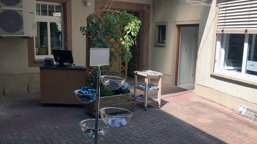Auch die Fische, die in der alten Engel-Apotheke die Kunden erfreuten, sind mit umgezogen und gut in der Louisenstraße angekommen. Herzeigbar ist ihr Aquarium allerdings noch nicht, weil das Wasser derzeit noch nicht die optimalen Nährstoff-Bedingungen hat und grünlich ist. In ein paar Tagen soll alles perfekt sein. Dann gibt‘s die Farbe Grün hier nur noch an den Wänden.