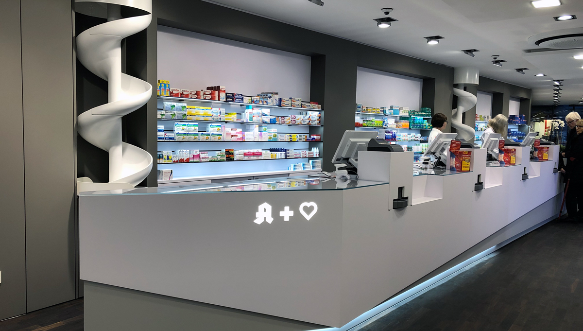 Die Engel-Apotheke ist mit dem Umzug gewachsen, sowohl die Offizin als auch die Manpower. Am alten Standort war der Verkaufsraum 30 Quadratmeter groß, der neue misst 180 Quadratmeter. Burggraf freut sich besonders, dass seine Mitarbeiter jetzt viel Platz für das gemeinsame Lunch haben. Auch das Lager ist größer als am alten Standort.