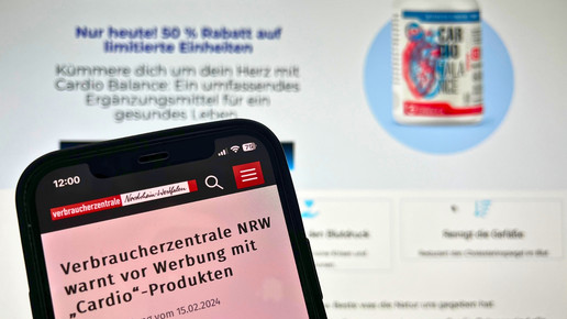 „Kümmere dich um dein Herz mit Cardio Balance: Ein umfassendes Ergänzungsmittel für ein gesundes Leben“, heißt es auf einer von vielen Websites zu Cardio-Produkten. Laut Verbraucherzentrale liegt darin eine der Schwierigkeiten, die Werbung zu verbieten: Es tauchen ständig neue, ähnliche Produktseiten ohne Impressum auf.