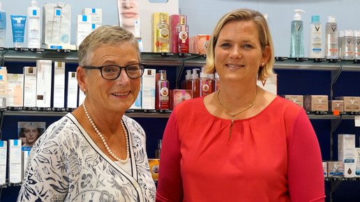 Die Arztpraxen seien voll und es sei schwer, Termine zu bekommen. „Die Apotheke ist immer offen, da spaziert man rein.“ Ihre neue Apotheke liege zentral und habe viel Laufkundschaft. „Mein Ziel ist es, eine Apotheke ‚zum Anfassen‘ zu haben.“ Unterstützt wird sie von dem bestehenden Team. Manche seien 30 oder 40 Jahre dabei und kennen die neue Chefin, seit sie ein Baby ist. „Wir haben aber auch junge PTA und sind gut durchmischt.“