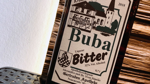 Vor einigen Jahren bekam er den Namen „Buba Bitter“ und das kam so: Die Vorgänger Simons‘ in der Gertruden-Apotheke, die Familie Buntenbach, hat vier Söhne, die zu Hause und von Freunden Buba 1, Buba 2 und so fort genannt wurden. Daraus entstand, vermutlich in Schnapslaune, der Buba Bitter.