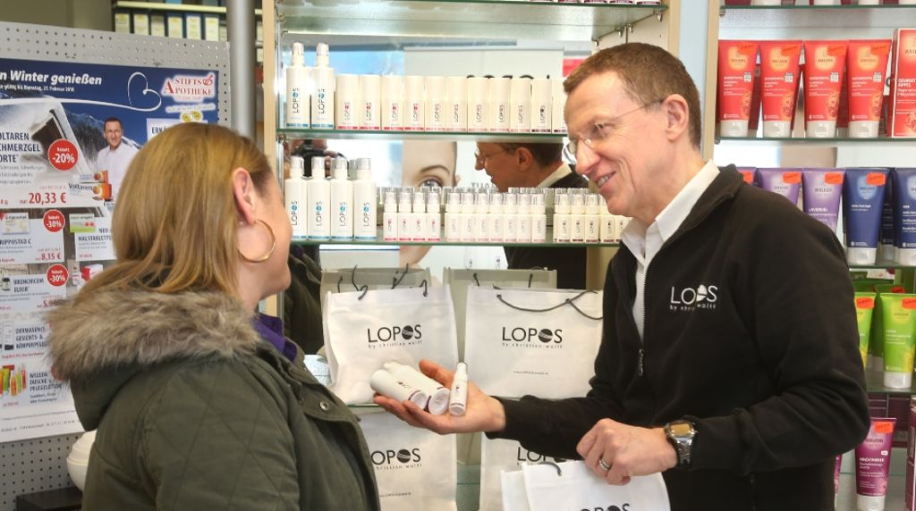 Da Christian Wolff selbst Allergiker ist und deshalb früher starke Hautprobleme hatte, beschloss er, eine Pflege zu entwickeln, die wirklich hilft. Bereits im Pharmaziestudium fing er an, daran zu arbeiten. Heute bietet der Apotheker aus Weinstadt bei Stuttgart mit seiner eigenen Kosmetiklinie Lopos seinen Kunden eine Lösung für ihre Hautprobleme und hat sich in der Region einen Ruf als Spezialist erarbeitet. Darin und nicht im möglichst niedrigen Preis liegen für Apotheker die Chancen, sich in Zukunft am Markt zu behaupten, ist Wolff überzeugt.