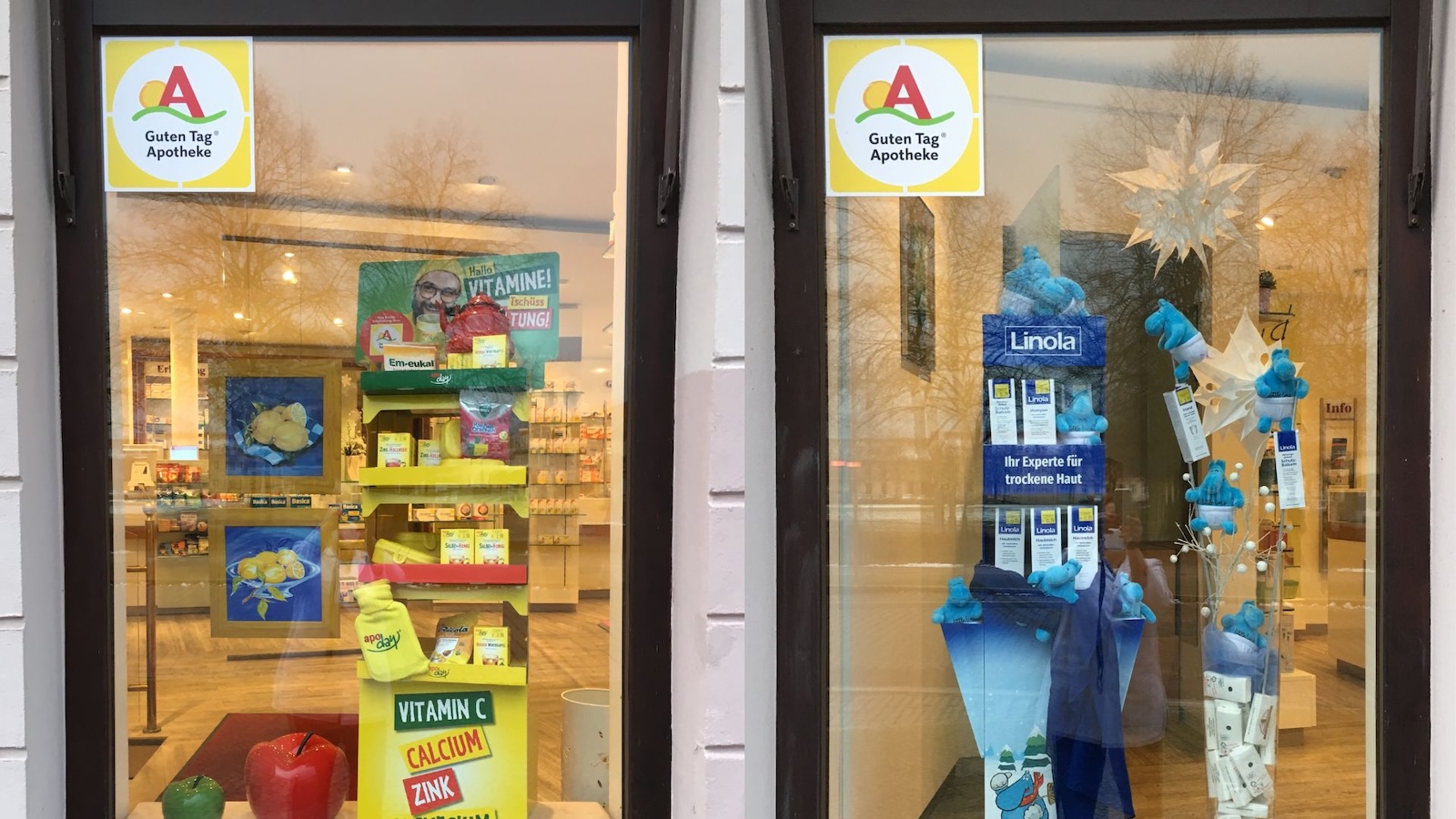 Dabei habe sie sich damals schon für eine abgespeckte Variante der Kooperationssichtbarkeit entschieden. „Es sind tatsächlich nur die kleinen Aufkleber oben in der Ecke der Schaufenster“, sagt sie. „Normalerweise klebt viel mehr an den Fenstern der beteiligten Apotheken.“