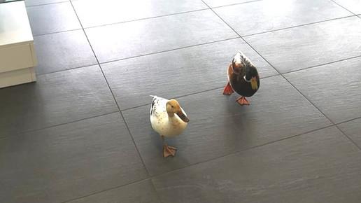 Einer langjährigen Mitabeiterin zufolge gehen die Vorfahren der Enten bereits seit 30 Jahren in dem Betrieb ein und aus. Die derzeitigen „Apotheken-Enten“ seien stubenrein, so die Pharmazeutin. Natürlich haben sie Namen: Petra und Priscilla. Auch ein Erpel ist dabei. Bei ihm sind sich die Mitabeiter jedoch nicht einig, ob es immer der selbe ist. Er heißt Peter.