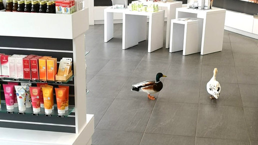 Wenn es in der Löwen Apotheke im hessischen Bruchköbel quakt, wundert sich keiner mehr. Denn regelmäßig besuchen Enten die Offizin. Bei schönem Wetter stehen die Türen offen und die Wasservögel gehen ein und aus.