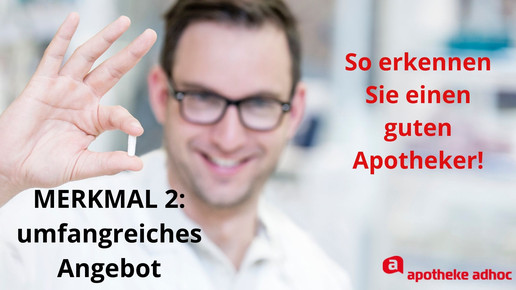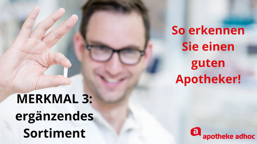 Merkmal 3 widmet sich dem Sortiment: Zum Angebot an Medikamenten gehörten in einer guten Apotheke auch andere Gesundheitsprodukte, Körperpflege und Nahrungsergänzungsmittel. Allerdings lasse die „enge Reglementierung“ bezüglich der Warenpräsentation wenig Spielraum für Apotheker. „Ein gutes Ergänzungssortiment erkennen Kunden an jahreszeitlichen Angeboten und der Beratungsleistung des Apothekenteams beispielsweise im Bereich Kosmetika und Hautpflege.“