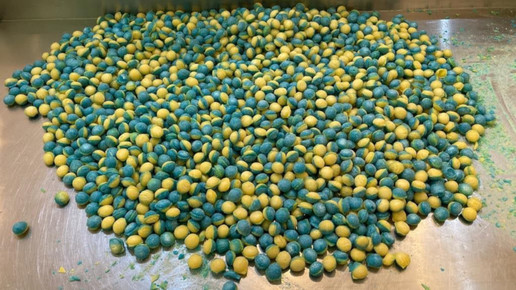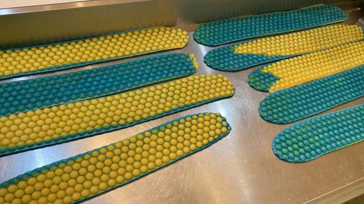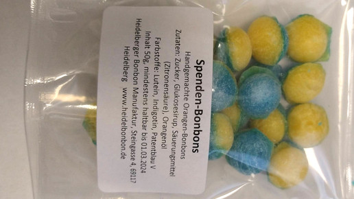 Vor einigen Jahren hatte Engler von der Heidelberger Bonbon Manufaktur bereits Pfefferminz-Bonbons in weiß-grün – den Farben der Apotheke – herstellen lassen. „Die sind super angekommen. Da kam mir die Idee Spenden-Bonbons in den Landesfarben der Ukraine produzieren zu lassen“, erklärt Engler. Er griff also direkt zum Hörer.