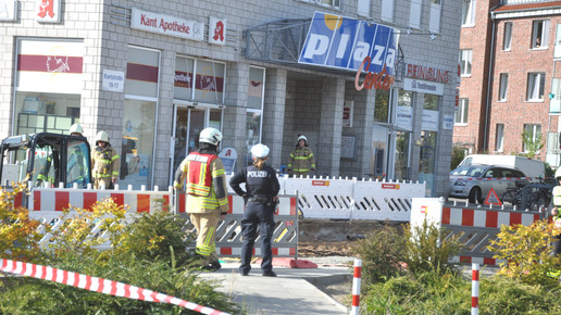 Bei Bauarbeiten in Lübeck wurde ein Erdgasrohr beschädigt. Die Feuerwehr rückte am Montagnachmittag zum Großeinsatz aus. Auch eine Apotheke war betroffen, sie musste gleich zweimal unfreiwillig schließen.