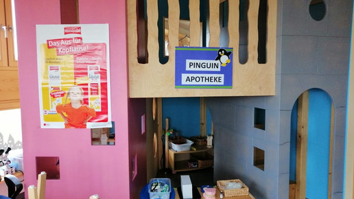 Die Spiel-Apotheke kommt bei den Kindern sehr gut an: „Sie spielen intensiv in der Ecke.“ Es sei amüsant, dem Rollenspiel und den Zwiegesprächen zu lauschen, sagt Reindl. Das Abgeben von Arzneimitteln ist begehrt: „Viele wollen der Apotheker und dann auch gleich der Chef sein.“ Die Pinguin-Apotheke bleibt bis zum Jahresende. Zuvor richtete der Kindergarten ein Krankenhaus ein.
