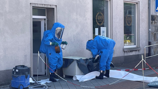 Zunächst mussten Teile des Inventars aus dem Obergeschoss ins Freie gebracht, dekontaminiert und für die Entsorgung verpackt werden. Anschließend wurde das Pulver, das sich als Zyankali herausstellte, mit einem speziellen Staubsauger aufgenommen. Danach musste das restliche Pulver auf dem Fußboden mit einer Chemikalie besprüht werden, damit es sich durch eine chemische Reaktion in ein harmloses Pulver umwandelt. Abschließend wurden die Räumlichkeiten gründlich mit Wasser durchgewischt.