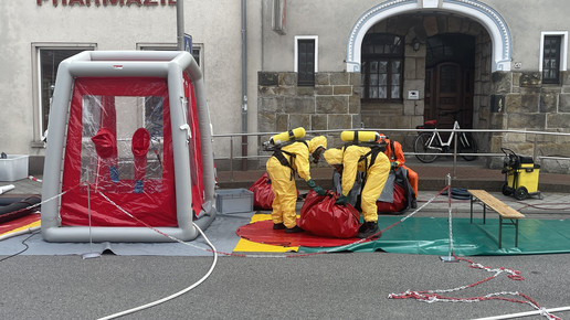 Die Feuerwehr wurde vergangene Woche zu einem Gefahrstoffunfall gerufen. Zunächst war nicht klar, um was für ein Pulver es sich handelte. Der ehemalige Inhaber berichtete, dass beim Aufräumen eine Flasche mit einem Pulver zu Bruch gegangen sei. Nach ersten Schilderungen des Apothekers wurde die Freiwillige Feuerwehr Norden mit ihrer Gefahrguteinheit zur Erkundung alarmiert. Weiterhin wurde ein Fachberater aus Brandenburg telefonisch kontaktiert.