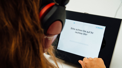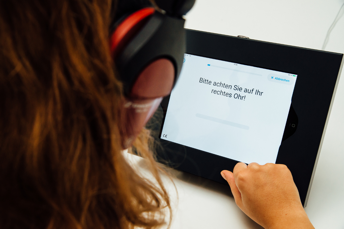 So läuft die Vorsorgeuntersuchung ab: Auf festinstallierten Tablets ist Audimatch als App programmiert. Spezielle Audiometriekopfhörer liefern verlässliche Angaben zur prozentualen Hörfähigkeit. Die Testergebnisse bleiben anonym, werden nur auf Wunsch des Patienten gespeichert. Ist das Hörvermögen der Testperson gut, erhält sie einen entsprechenden Hinweis und ein Angebot für weiterführende Informationen rund um Hörgesundheit, Vorbeugung und Schutz. Stellt Audimatch auffällige Abweichungen fest, bekommt die Testperson eine Empfehlung, eine ärztliche Kontrolle durchführen zu lassen.
