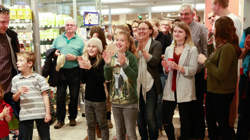 Der ungewöhnlichste Ort für ein Apotheken-Konzert war bisher in Langwedel. Weil die Offizin der Paracelsus-Apotheke zu klein war, zog man kurzerhand auf den Pferdehof. Apotheker Hannes Clasen hatte seine Mitarbeiter eingeladen und jeder durfte jemanden mitbringen. So war es eine bunte Mischung, die Kims Auftritt lauschte. Zu jedem perfekten Apotheken-Konzert gehört natürlich Kims eigener Song „Butterflies“, aber auch Hits wie „Use somebody“ von Kings of Leon oder „Ex‘s and Oh‘s“ von Elle King hat die PTA im Repertoire.