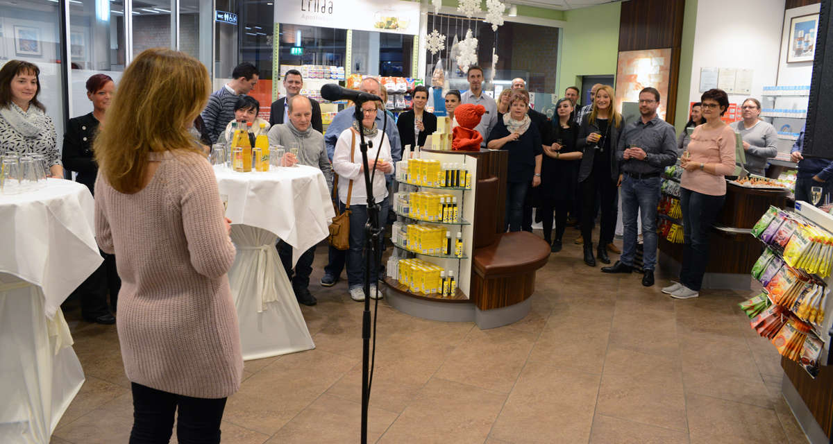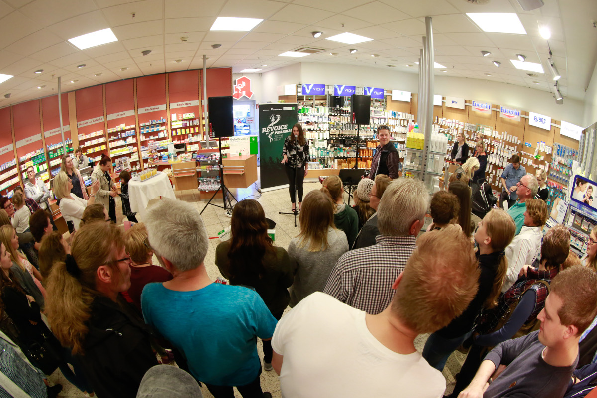 Der singende Star des Abends ist PTA Kim Lohmann, Gewinnerin der ersten Staffel von „Revoice of Pharmacy“ in 2016. Nach ihrem Auftritt geht‘s in Ihrer Offizin rund, sie können mit Ihrem Team und Freunden und Familie so richtig feiern. Genießen Sie den musikalischen Abend, ein leckeres Catering – alles geht auf unser Konto.