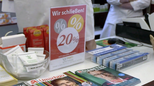 Die Markt-Apotheke im baden-württembergischen Mosbach ist ab sofort geschlossen. Apothekerin Dorit Sauerzapf hört aus wirtschaftlichen Gründen auf. Diese lauten: Immer weniger Ärzte, immer weniger Geschäfte, immer weniger Kunden.