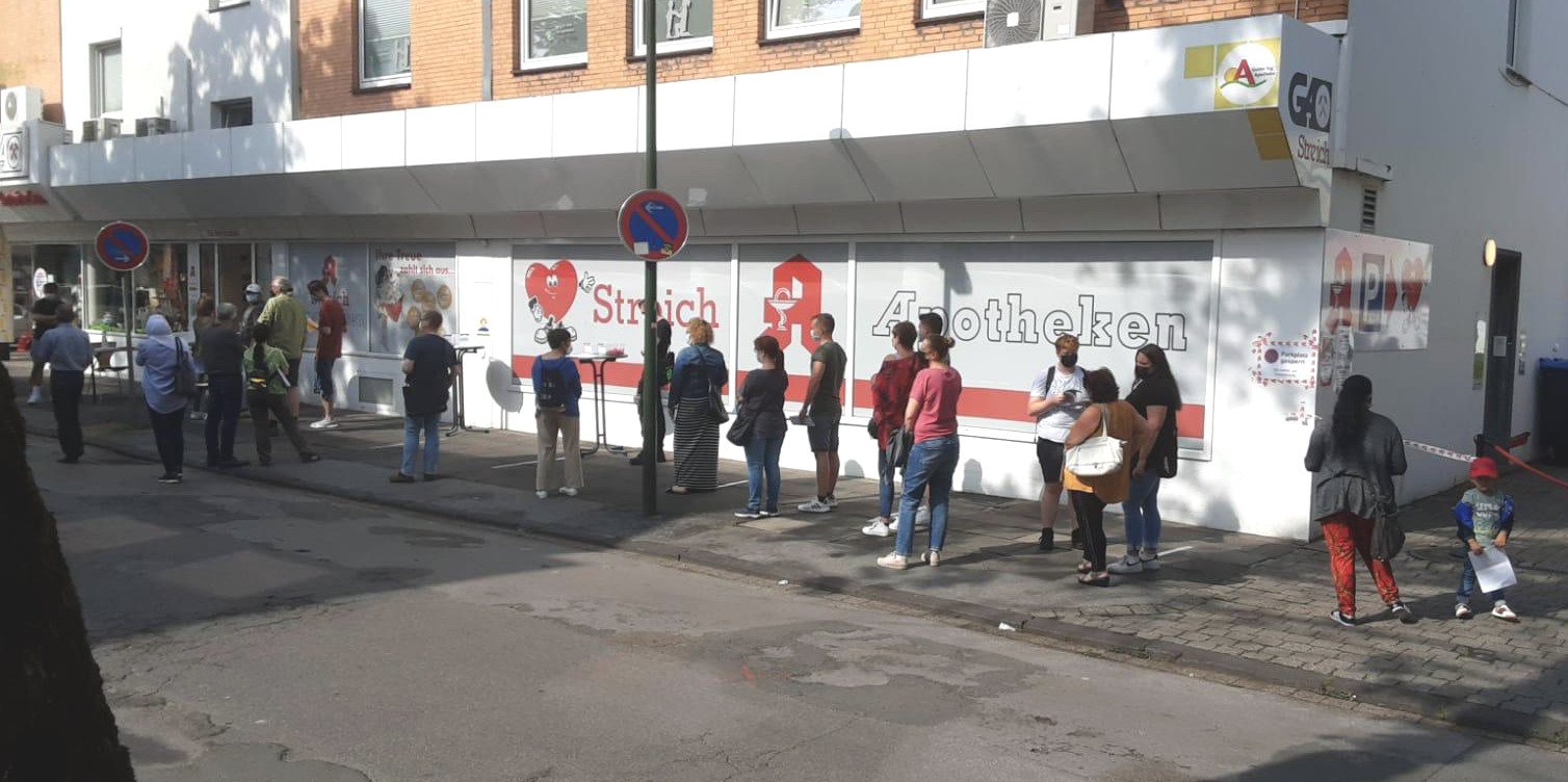 Die Apothekenangestellte halfen dabei, Bänke und Stühle für die Wartebereiche aufzustellen. Zudem wurden die Impflinge beim Ausfüllen der notwendigen Formulare unterstützt. „Wir sind hier in einem Brennpunkt-Gebiet. Viele sind überfordert wegen des Papierkrams.“ Die Mitarbeiter:innen aus dem Testzentrum halfen außerdem dabei, dass die notwendigen Abstände eingehalten wurden.