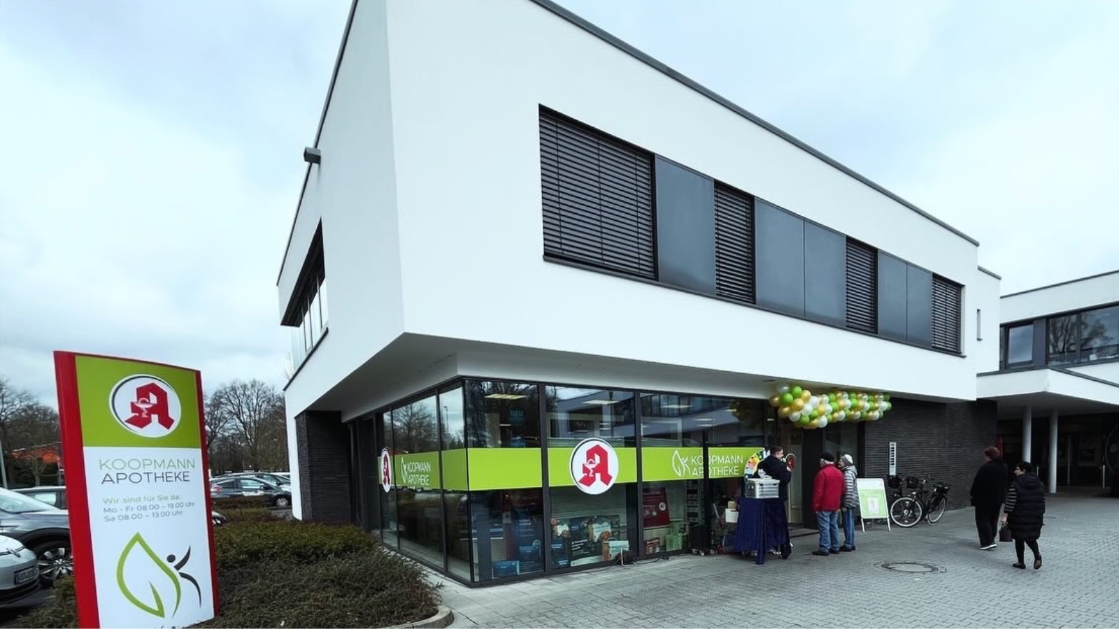Simon Koopmann und Team feierten mit dem Oldenburger Vorort Wiefelstede die Übernahme der ehemaligen Hummel-Apotheke, nun Koopmann-Apotheke. Während die Einwohnerinnen und Einwohner froh sind, ihre Vor-Ort-Apotheke zu behalten, blickt Koopmann trotz der angespannten politischen Lage zuversichtlich in die Zukunft.