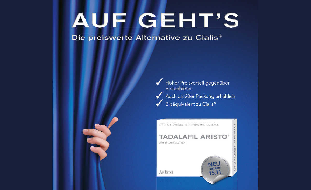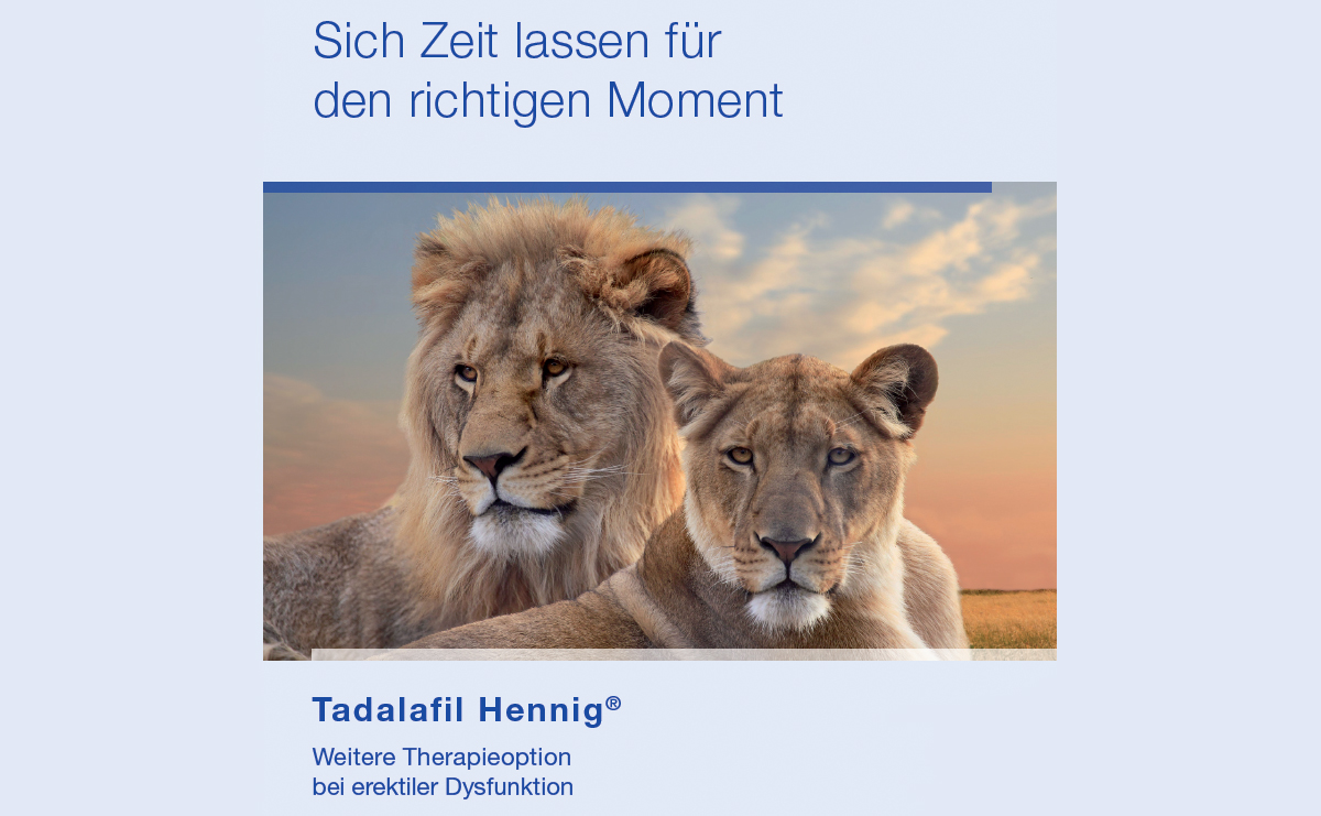 Werbung schalten auch die Hersteller der Tadalafil-Generika, die diese Woche auf den Markt gekommen sind. In den Marketing-Abteilungen hat man sich Gedanken gemacht und entschieden: Potenzmittel bewirbt man am besten mit extrem potenten Tieren. Mufflon, Pferd und Elefant müssen für die Kampagnen herhalten.