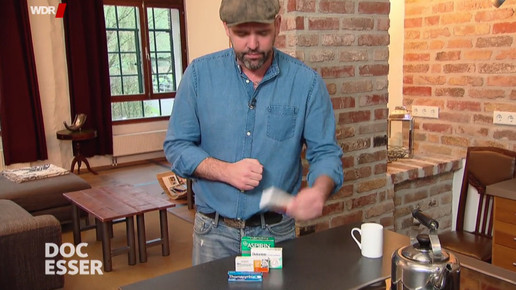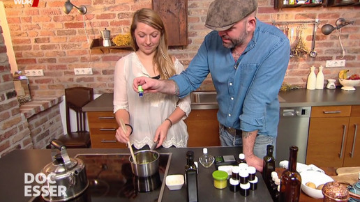Auf der Suche nach Alternativen trifft Esser die Kräuterexpertin Tine Knauft. Geeignet bei Spannungskopfschmerz seien Lavendel- oder Mädesüßtee. Letzterer enthalte die Vorstufe der bekannten Salicylsäure. Linderung vermögen auch warme Kartoffelwickel in Schultern und Nacken zu schaffen. Knauft empfiehlt außerdem die Herstellung einer Kopfschmerzsalbe auf Basis von Mandelöl und Bienenwachs mit Minz- und Eukalyptusöl, die auf die Schläfen aufgetragen werden kann. Auch sei ein selbst hergestelltes Massageöl mit wärmender und durchblutender Wirkung geeignet. Hierzu sollen Zimt- und Nelkenöl sowie Campher in Mandelöl gegeben werden. Hilfe bei Kopfschmerzen komme jedoch auch direkt aus der Küche. Betroffene könnten zu frischen Basilikumblättern, Ingwertee oder einem Apfel greifen.