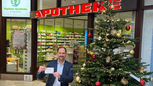 Raphael Felber hat vor seiner Raphael Apotheke in Starnberg in Bayern einen Wunschbaum aufgestellt. In Zusammenarbeit mit mehreren sozialen Einrichtungen erfüllt er gemeinsam mit seinen Kund:innen damit jedes Jahr Kindern und Senior:innen an der Armutsgrenze Weihnachtswünsche.