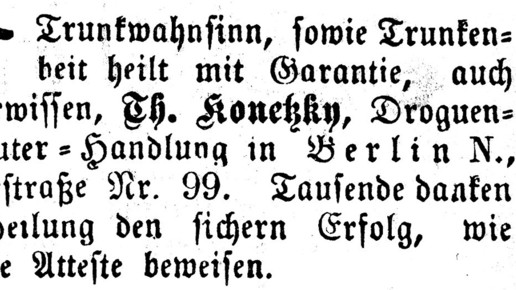 Andere Kollegen hätten sich dagegen sehr in der Aufklärung vor den Gefahren des Alkoholmissbrauchs engagiert. Sie brauten Haus- und Heilmittel und engagierten sich im Blaukreuz-Verein, der alkoholfreie Restaurationen unterstützte. Doch nicht all diese Antidote entfalteten eine heilende Wirkung: „Das von dem Apotheker Günther zu Altona seit einiger Zeit in öfffentlichen Blättern angepriesene Geheimmittel gegen Trunksucht ist von dem Berg-Commissair Stromeyer zu Hannover untersucht und von demselben für gesundheitsnachtheilig erklärt“, schrieb 1862 die Königlich-Hannoversche Landdrostei. „Wir können daher nicht unterlassen, gegen den Gebrauch dieses Geheimmittels dringend zu warnen.“