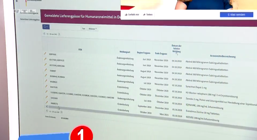 Der Privatsender RTL hat die zunehmenden Lieferengpässe in Apotheken thematisiert. In der Sendung Punkt 12 stellte er die Frage, ob es wirklich ein Problem gebe, oder die Situation übertrieben wird. Die Reporter nutzten versteckte Kameras, um eine Antwort zu finden. Insgesamt gibt es Lob für das Engagement der Apotheken.