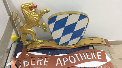 Sein Schicksal erklärt sich Winkler so: „Wir vermuten, dass er auf das Dach des Transporters gefallen ist und dass er ihn dann unterwegs während der Fahrt verloren hat.“ Gemeinsam mit einem anderen goldenen Schilderlöwen ziert er seit den 1950-er Jahren das schmucke Schild oberhalb des Apothekeneingangs. In ein paar Tagen soll das Schild dann wieder repariert sein.