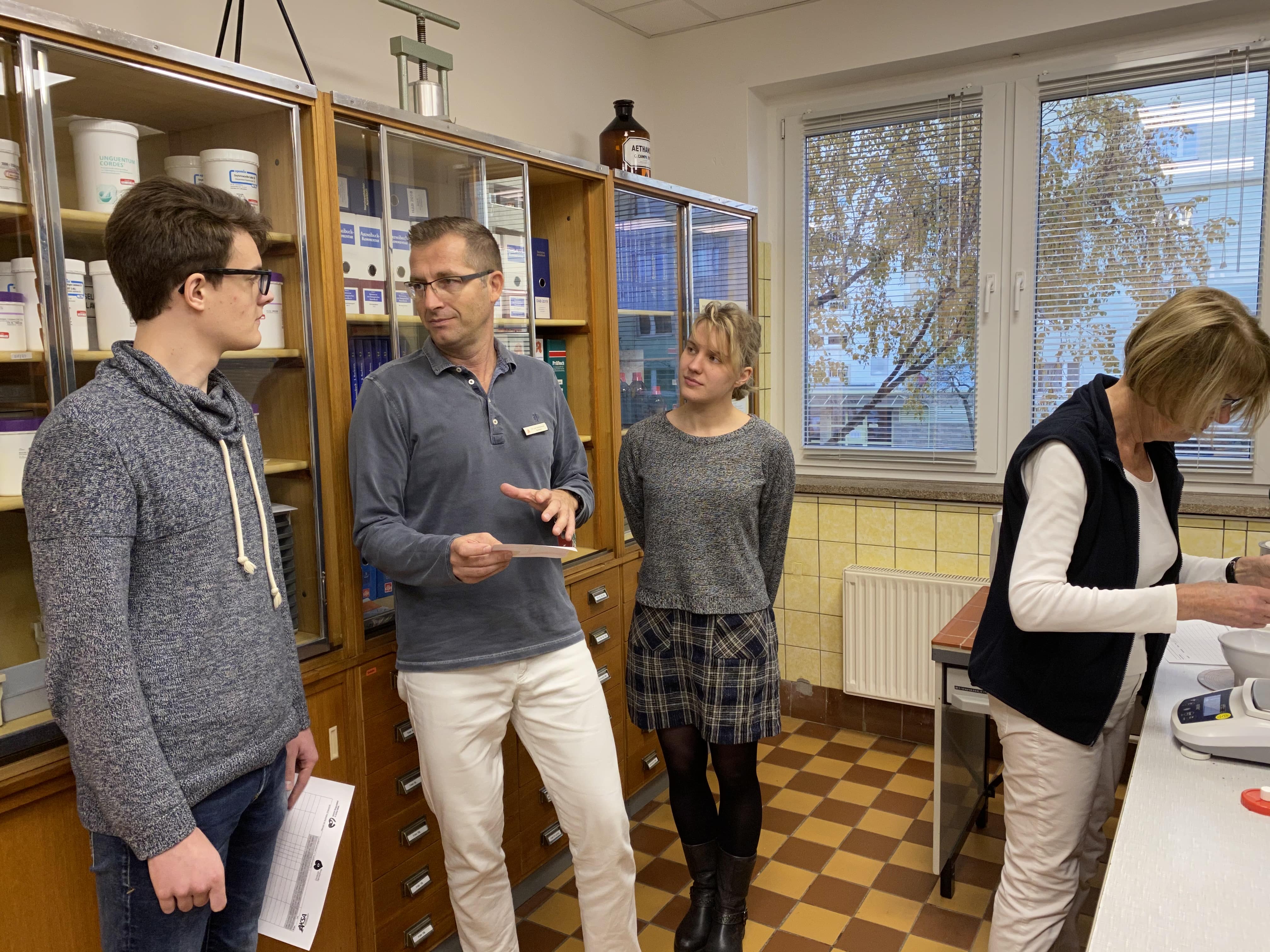 „Es war gut, einen Blick hinter die Kulissen zu werfen. Wir können aus diesem Besuch viele Eindrücke mitnehmen und an unsere Kommilitonen weitergeben“, zieht Vasilevska ein positives Fazit aus dem Besuch in der Sonnen-Apotheke. Und Roßnick ergänzt: „Ein Arzt sollte bei Medikamenten immer über sein Fachgebiet hinausschauen. Das habe ich hier in der Apotheke eindrucksvoll erfahren.“ Mohrenweiser sieht zudem weitere Möglichkeiten im Zusammenspiel zwischen Medizinern und Pharmazeuten: „Apotheker auf Station können im Krankenhausalltag viel leisten und die Ärzte bei Entscheidungen zum Arzneimitteleinsatz unterstützen.“