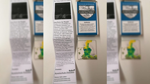 Zusätzlich zur Miniatur-Kunst enthält die Schachtel einen Steckbrief des Künstlers. Die enthaltenen Werke sind Unikate. Hausmann und seine Frau möchten versuchen mit dem Automaten auch die regionalen Künstler zu unterstützen, indem auch sie ihre Werke im Automaten platzieren können. „Das könnte vielleicht auch Stadtteilbezogen passieren“, meint der Apotheker.