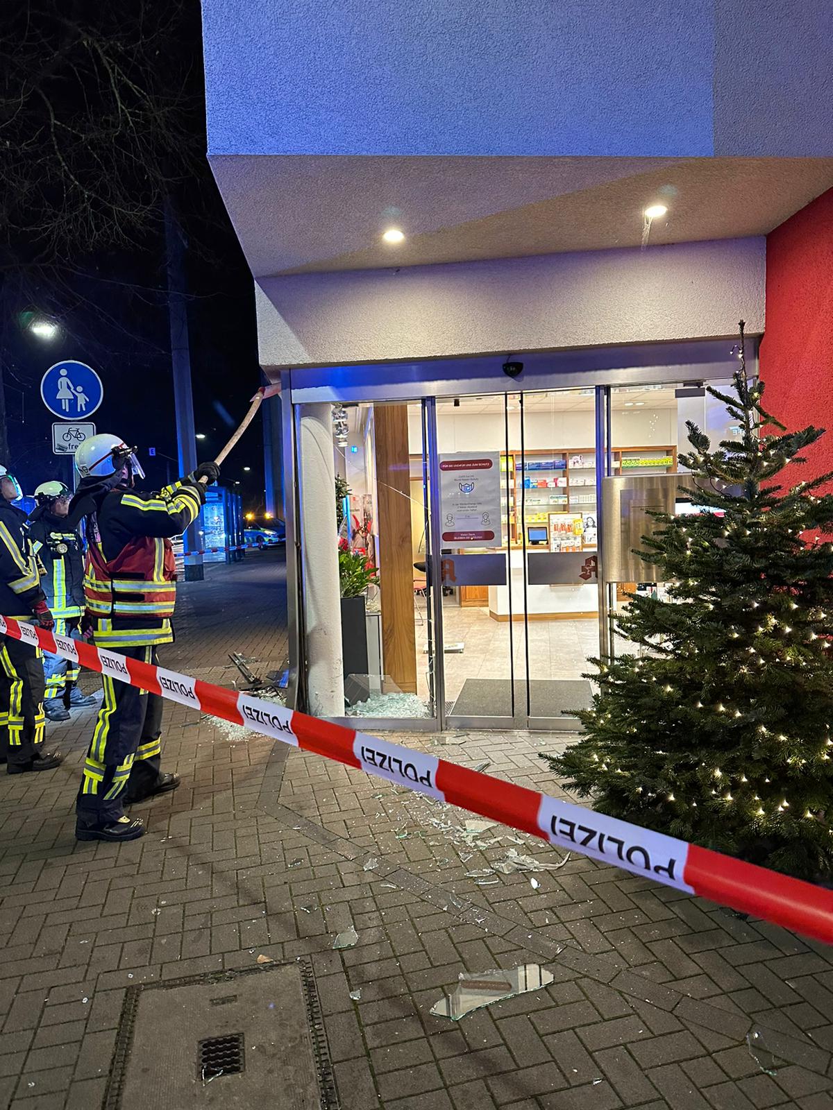 Am Freitag gegen 17.30 Uhr gab es in der Apotheke von Dagmar Schran einen Riesenknall. Ein 47-jähriger Autofahrer fuhr mit seinem Golf aus bisher ungeklärter Ursache in das Schaufenster der Apotheke. Die Apotheke befindet sich an einer Ampelkreuzung. Ein einsamer Pfeiler direkt vor der Apotheke hat dem Auto wohl kurz vor dem Durchbruch der Scheibe eine erste Bremse verpasst. Es heißt, der Mann habe möglicherweise einen medizinischen Notfall erlitten. Bei dem Unfall wurde er schwer verletzt und vom Rettungsdienst in ein Krankenhaus gebracht. Der Bereich an der Kreuzung musste vorübergehend gesperrt werden. Der Unfallwagen wurde abgeschleppt.