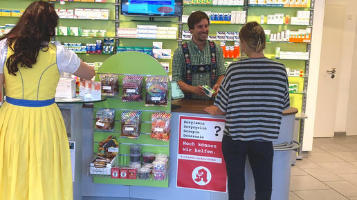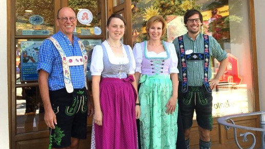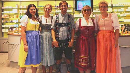 Im oberbayerischen Garmisch-Partenkirchen läuft noch bis Montag die Partenkirchener Festwoche. Auch in der Dreitorspitz-Apotheke und der Promenade-Apotheke wird dies gebührend gefeiert: Dort bedienen die Mitarbeiter sowie die Inhaber Sebastian und Hermann Guggemos ihre Kunden in traditioneller Tracht. Und auch dem Festzelt stattet das Team einen Besuch ab.